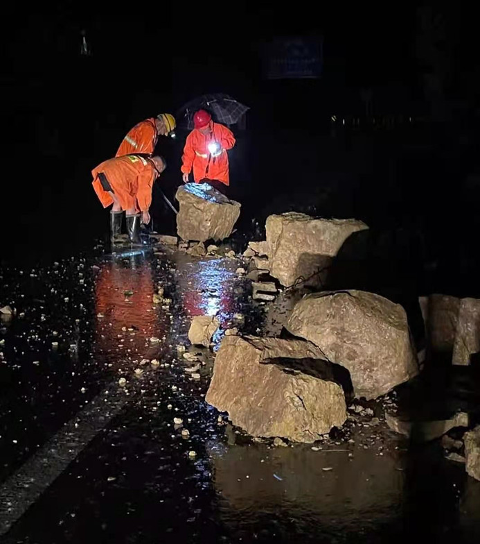 面對險情,路橋公司嚴格遵循“安全第一、先通后暢、先輕后重”的搶險原則,認真部署,密切配合,第一時間組織應急搶險人員、機械、設備到達受災路段全力進行搶通保通。截止7月16日上午9:30,共計投入搶險機械16個臺班,搶險人員118人次,清理垮方3240余立方米,清除倒伏行道樹10株,疏通積水路段排水設施13處,確保了管養(yǎng)公路暴雨期間安全暢通。