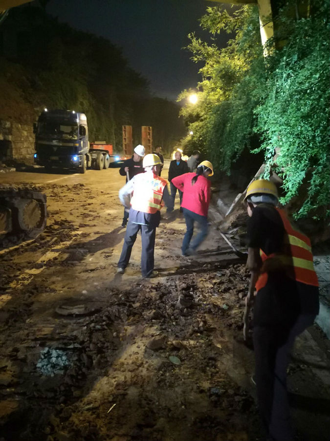9月16日下午,該處道路邊坡?lián)跬翂σ蛲临|(zhì)松軟突然發(fā)生大面積垮塌,造成道路中斷,給過往車輛和行人通行造成不便和安全隱患。接到險(xiǎn)情緊急通知后,路橋公司副總經(jīng)理張鵬及相關(guān)部門負(fù)責(zé)人員迅速趕到現(xiàn)場(chǎng)實(shí)地查勘,并立即啟動(dòng)應(yīng)急搶險(xiǎn)預(yù)案,共組織大型挖掘機(jī)三臺(tái)、運(yùn)渣車16輛,工人十余人趕赴現(xiàn)場(chǎng)進(jìn)行搶險(xiǎn)。在確保安全的前提下,搶險(xiǎn)人員履職盡責(zé)、日夜堅(jiān)守,強(qiáng)化責(zé)任擔(dān)當(dāng),密切協(xié)作配合,發(fā)揚(yáng)了不畏艱苦、不怕疲勞、連續(xù)作戰(zhàn)的優(yōu)良作風(fēng),通過一晝夜奮戰(zhàn),清運(yùn)垮塌土方共計(jì)1600立方米,爭(zhēng)分奪秒搶通了道路,堅(jiān)決有力的完成了搶險(xiǎn)工作?!?/p>