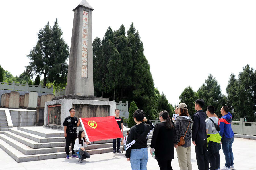 郁郁蒼蒼飛龍山,坎坎坷坷長征路。在紀念廣場上,團員青年認真了解了革命先烈英勇無畏的事跡,據(jù)歷史記載,紅軍長征時期,紅12師34團在飛龍山駐扎、戰(zhàn)斗和生活19天,遺留下蘇維埃舊址、戰(zhàn)壕等紅色歷史遺跡。在紅軍長征紀念碑前,團員青年向革命先烈敬獻菊花,默哀致敬,表達對先烈的緬懷之情。在團支部書記李越的帶領(lǐng)下,全體團員青年重溫了入團誓詞,銘記時代青年的責(zé)任和使命。隨后,跟隨講解員的腳步,大家重走長征路,參觀了飛龍洞、紅軍戰(zhàn)壕、跑馬場等景點,探尋當(dāng)年紅軍留下的遺跡,追尋紅色記憶。