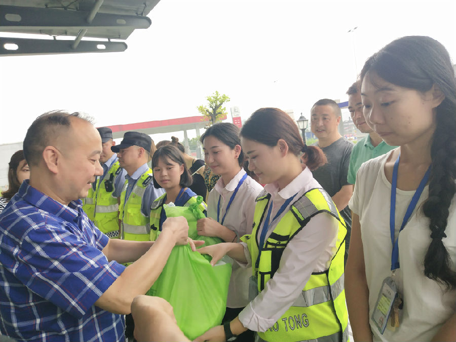 田青春主席為大家送上毛巾、香皂、洗衣液、飲料等防暑降溫物品,感謝他們?yōu)槔@城高速公路安全暢通所做出的貢獻。同時要求繞城所管理層要時刻關(guān)心、關(guān)注一線干部職工,確保隊伍穩(wěn)定,力促繞城高速運營管理工作順利推進。