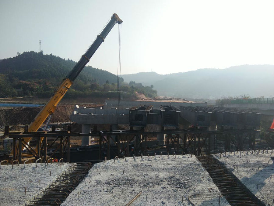 在項(xiàng)目施工現(xiàn)場,寇子勝局長檢查了小箱梁吊裝情況和跨綿廣高速鋼箱梁架設(shè)施工進(jìn)度,聽取了施工單位中鐵二十三局項(xiàng)目經(jīng)理部負(fù)責(zé)人施工進(jìn)度匯報(bào)及交發(fā)集團(tuán)協(xié)調(diào)推進(jìn)工作情況。他對項(xiàng)目建設(shè)進(jìn)度、施工組織、協(xié)調(diào)部署等方面給予了充分的肯定:一是施工單位攻堅(jiān)克難,發(fā)揚(yáng)“鐵軍精神”取得成效。中鐵二十三局項(xiàng)目部秉承發(fā)揚(yáng)鐵道兵前無險(xiǎn)阻的光榮傳統(tǒng),克服工期緊、雨季長的困難,優(yōu)化施工組織方案,啃骨頭,打硬仗,施工進(jìn)度取得喜人成效,經(jīng)驗(yàn)值得推廣學(xué)習(xí)。二是業(yè)主單位協(xié)調(diào)到位,再現(xiàn)“交發(fā)速度”推進(jìn)有力。交發(fā)集團(tuán)加強(qiáng)內(nèi)外組織協(xié)調(diào),化解阻工、箱梁運(yùn)輸?shù)戎T多阻點(diǎn),創(chuàng)造了良好施工環(huán)境,有力保障了形象進(jìn)度超常推進(jìn)。