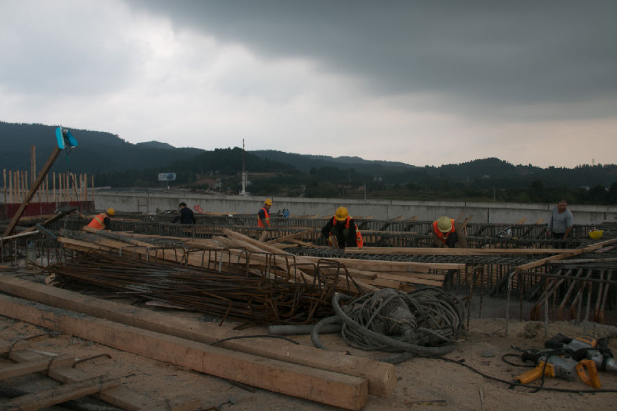 對于工程施工來說六、七月本是干活的最佳時機,但偏偏天公不作美,連續(xù)的暴雨天氣延誤了二十二天的工期,給施工生產進度造成了極其嚴重的影響,重重壓力下,集團公司領導班子帶頭堅守在施工生產一線進行督導,項目部一方面增加大量的人力物力;另一方面加大施工力度,優(yōu)化每道施工工序,確保24小時運轉,施行人停機不停,全體參戰(zhàn)人員不分晝夜,卯足干勁,連續(xù)作戰(zhàn)工作,將箱梁日均生產能力逐步提高,使制梁、架梁施工工作得到有序推進:8月7日開始每天日穩(wěn)產2片梁,8月23日第一次生產3片梁,從9月4日開始實現(xiàn)了每天穩(wěn)產3片梁的目標,并在9月17日首次突破日產4片梁的生產記錄,架梁也取得了日架8片的新紀錄。