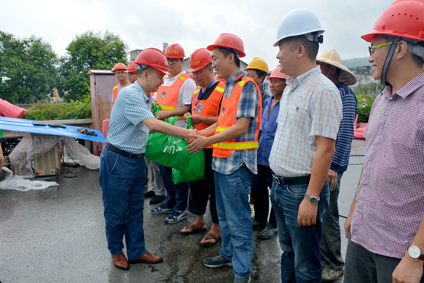 7月18日上午,集團(tuán)黨委副書(shū)記、紀(jì)委書(shū)記、工會(huì)主席田青春帶領(lǐng)相關(guān)工作人員深入國(guó)道G108線(xiàn)魏柳河一號(hào)橋?yàn)?zāi)損搶險(xiǎn)工程現(xiàn)場(chǎng),對(duì)施工人員進(jìn)行慰問(wèn),并送上防暑降溫物品。田青春同志代表集團(tuán)公司向堅(jiān)守在高溫環(huán)境下辛勤工作、無(wú)私奉獻(xiàn)的職工表示衷心感謝和崇高敬意!叮囑施工負(fù)責(zé)人要強(qiáng)化安全作業(yè)意識(shí),合理調(diào)整作業(yè)班次,切實(shí)做好防暑降溫、安全施工和防汛度汛工作,確保施工人員健康和安全。