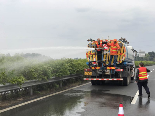 4月上旬,路橋公司下屬綠化公司首次對(duì)該路段的綠化帶進(jìn)行了澆水、施肥、修剪、病蟲害防治、除草以及白色垃圾清理等工作。綠化公司負(fù)責(zé)人對(duì)作業(yè)人員進(jìn)行了安全培訓(xùn),并根據(jù)現(xiàn)場實(shí)際情況,討論和制定了下一階段綠化管養(yǎng)計(jì)劃。