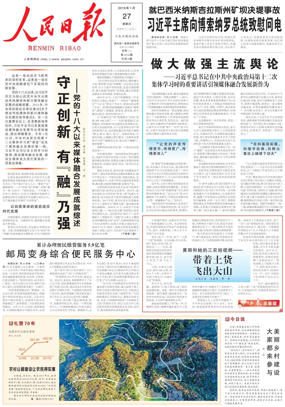 平武農(nóng)村公路建設(shè)項目助力決戰(zhàn)決勝脫貧攻堅,2019年1月27日被《人民日報》選刊作為禮贊中華人民共和國70周年專題事跡附圖。