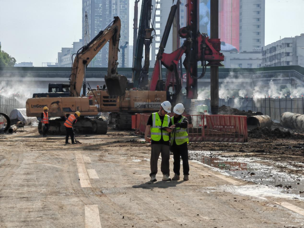 面對(duì)假期激增的客流壓力與緊張的施工節(jié)點(diǎn),交發(fā)港航科學(xué)統(tǒng)籌各參建單位密切協(xié)作、精準(zhǔn)施策、成立專班,采取“分班次、連軸轉(zhuǎn)”的作業(yè)模式,工人們?nèi)找箠^戰(zhàn)在施工一線,大型機(jī)械設(shè)備集中運(yùn)轉(zhuǎn),確保如期完成站前廣場(chǎng)主體結(jié)構(gòu)施工。