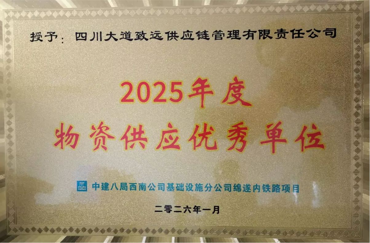 大道供應鏈公司榮獲綿遂內(nèi)鐵路項目 “2025年度物資供應優(yōu)秀單位”