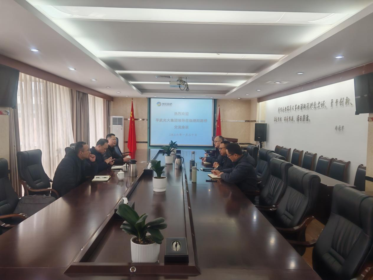 馬斌對平武光大集團一行的到來表示歡迎,并詳細介紹了路橋集團的基本情況、核心業(yè)務布局及行業(yè)深耕成果。他表示,平武光大集團作為平武縣國有資本運營的重要平臺,在區(qū)域基礎(chǔ)設(shè)施建設(shè)、資源開發(fā)利用等領(lǐng)域積淀深厚、優(yōu)勢突出,與路橋集團業(yè)務高度契合,合作前景廣闊。希望以此次交流為契機,建立長效溝通機制,圍繞平武區(qū)域發(fā)展需求,在基礎(chǔ)設(shè)施提質(zhì)升級、重點項目共建等領(lǐng)域深化合作,實現(xiàn)優(yōu)勢互補、協(xié)同發(fā)展,共同助力平武縣域經(jīng)濟高質(zhì)量發(fā)展。