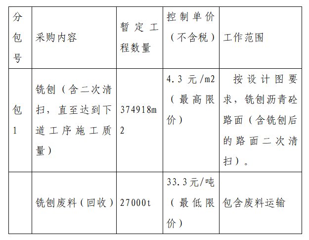 4、競得方式:一次報價,最低報價法(其中:銑刨廢料回收按報價最高法),銑刨和廢料回收總價經(jīng)計算后,招標(biāo)人綜合發(fā)生成本最低者中標(biāo);若一次報價中最低報價有相同的,由招標(biāo)人綜合評判確定成交單位。 ?