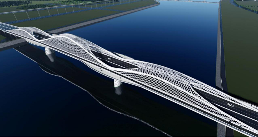 青石路涪江大橋位于科技城新區(qū)北翼,是聯(lián)系涪城青義片區(qū)和游仙石馬片區(qū)跨涪江的重要橋梁,定位為重要城市主干道。涪城側(cè)接主城區(qū)至江油城區(qū)城市快速路——綿江路,游仙側(cè)接南北向城市主干道——科學(xué)城大道。項目全長約1.4公里(其中橋長943m),主橋為400m(110m+180m+110m)梁拱組合橋,鋼箱結(jié)構(gòu),引橋為預(yù)應(yīng)力混凝土連續(xù)梁,涪城側(cè)引橋180m(2×40+2×50);游仙側(cè)引橋363m(2×40+4 × 30+(30+43+30)+2×30)。采用城市主干路技術(shù)標(biāo)準(zhǔn),雙向六車道,設(shè)計時速為60公里/小時,建設(shè)內(nèi)容主要包括道路、橋梁、交安、綠化、照明、管網(wǎng)等。